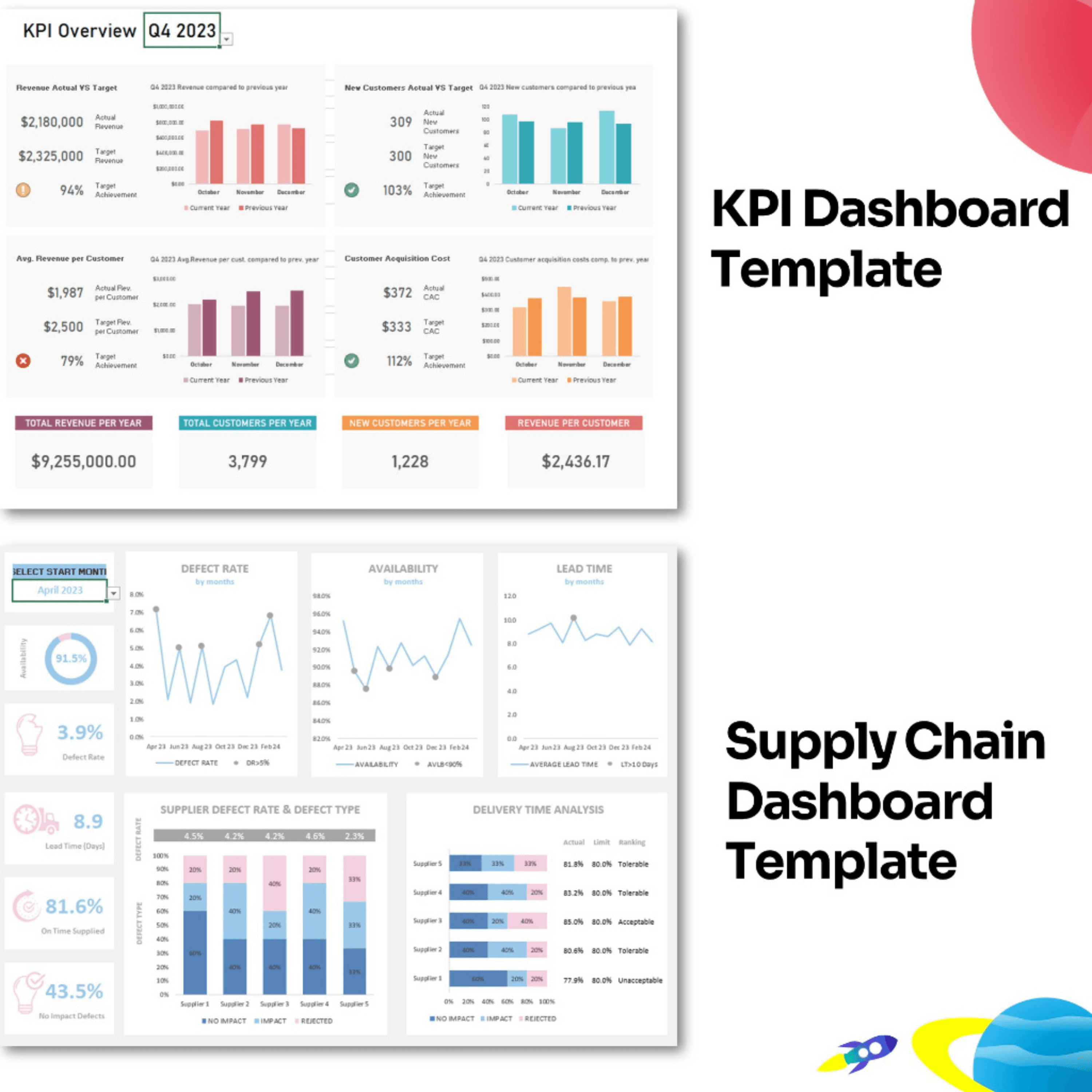 👉Whether you’re tracking sales figures, monitoring inventory levels, or keeping tabs on employee performance, the 12 Excel KPI Dashboard templates make it easy to visualize and analyze your data. Each template includes a range of charts, graphs, and tables that provide a comprehensive view of your KPIs, along with tools for drilling down into the details and identifying areas for improvement.